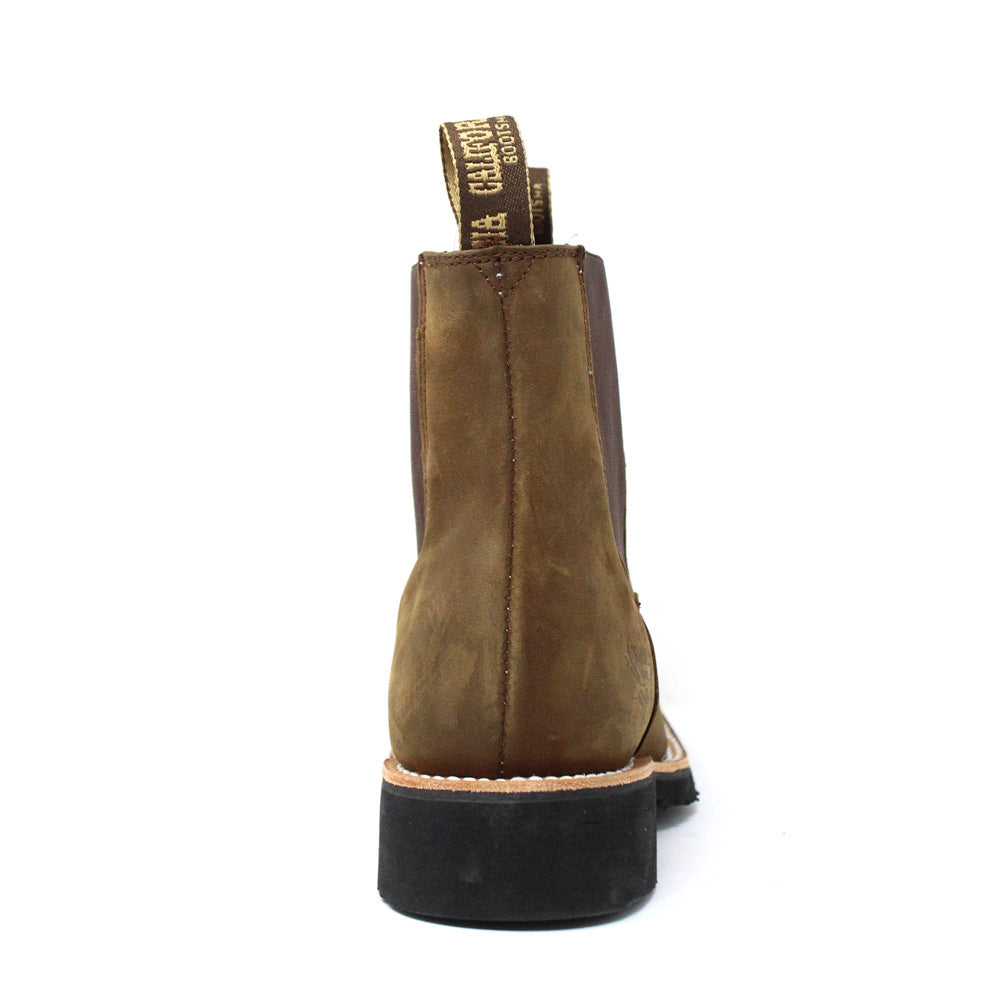 botin horma bulldog piel crazy moka con suela de hule y cerco de cuero